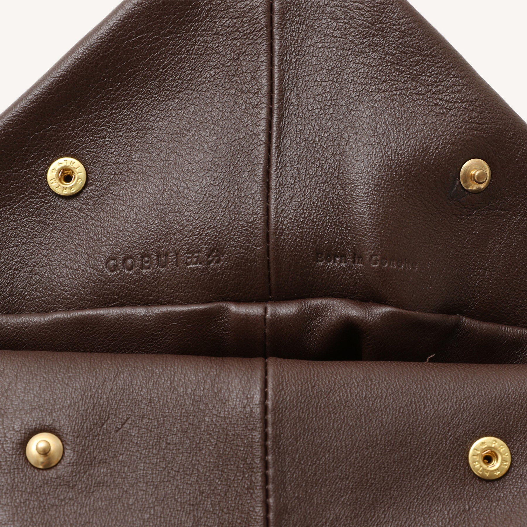 内側も表と同じレザーで仕上げています。内側に<五分>のロゴマークが素押ししました。