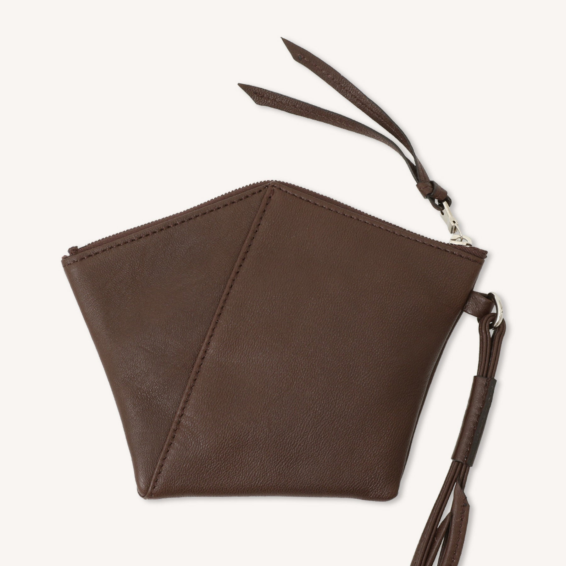 長方形を重ねあわせた構造で、重なった部分がそのままスラッシュポケットになっています。カードを斜めに取り出せるデザインです。